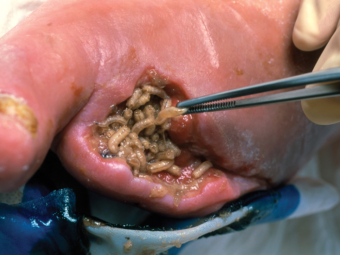 Larvae secrete antibacterial and antifungal compounds and, combined with their ability to dislodge and dissolve dead tissue while stimulating the healing process, they offer a means of cleaning wounds that may not respond to antibiotic therapy (see panel overleaf). The process is also relatively low risk, and can avoid more lengthy and expensive surgical-type debridement procedures. Another factor in their favour is that larvae can wriggle their way into areas that might not be as accessible with a blade or that liquid treatments can't penetrate.