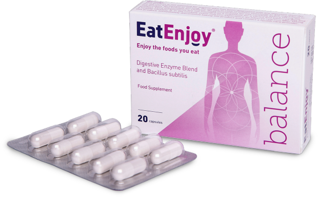 EatEnjoy Balance features a blend of 13 different enzymes together with the probiotic Bacillus subtilis – ‘good’ bacteria found in the human intestinal tract that facilitate the digestion of complex foods.