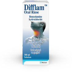 Presentation: Difflam™ Sore Throat Rinse & Difflam™ Oral Rinse contain benzydamine hydrochloride 0.15% w/v. Presented as a gargle/oral rinse in a 200ml and 300ml glass bottle respectively. Indications: Locally acting analgesic and anti-inflammatory treatment for the relief of painful inflammatory conditions of the throat including pharyngitis. Dosage and administration: Rinse or gargle with 15ml (using measuring cup provided) every 1½-3 hours as required. Expel solution from the mouth after use. If stinging occurs the rinse may be diluted with water. Uninterrupted treatment should not exceed seven days, except under medical supervision. It is not suitable for children aged 12 years or under. Contra-indications: Patients with hypersensitivity to ingredients. Warnings and Precautions: Not advisable in patients with hypersensitivity to acetylsalicylic acid or other NSAIDs. Bronchospasm may be precipitated in patients suffering from or with a previous history of bronchial asthma. Caution should be exercised in these patients. The small amount of alcohol in this medicine will not have any noticeable effects. Some inactive ingredients may cause allergic reactions. Avoid contact with the eyes. Interactions: None known. Pregnancy and lactation: Difflam™ Sore Throat Rinse should not be used in pregnancy or lactation unless considered essential by the physician. There is no evidence of a teratogenic effect in animal studies. Undesirable effects: Serious (frequency not known): Anaphylactic reaction which can be potentially life-threatening. Hypersensitivity reactions. Angioedema (Uncommon): Oral tissue numbness or 'stinging' sensations in the mouth may occur. (Very rare): pruritus, rash, urticaria, photosensitivity reaction, laryngospasm/bronchospasm. Prescribers should consult the Summary of Product Characteristics in relation to side-effects. Basic price (UK): RRP Difflam™ Sore Throat Rinse 200ml bottle £8.99 Difflam™ Oral Rinse 300ml bottle £11.19 Product licence number: Difflam™ Sore Throat Rinse PL 60682/0014 & Difflam™ Oral Rinse PL 60682/0015 Legal category: P